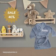 Luxe babybadjas met capuchon, optioneel gepersonaliseerd met de naam van de baby. Van 100% katoen, perfect als kraamcadeau. Maat: 0-12 maand. Optioneel met cadeauverpakking.