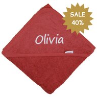 Zachte badcape met naam, 100% katoen. Met capuchon en borduring. Persoonlijk kraamcadeau in diverse kleuren en maten. Warm, stijlvol en praktisch na het badderen.